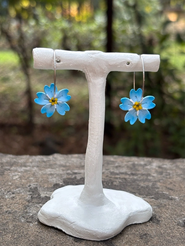 Delicate and elegant, these handmade blue floral hoop earrings are crafted with premium polymer clay and designed to resemble tiny blooming flowers. Each petal is carefully shaped by hand, making every pair unique and artistic. Lightweight and comfortable for daily wear, these earrings feature high-quality antitarnish metal hoops, ensuring long-lasting shine. Perfect for gifting or adding a soft, feminine touch to your outfits.