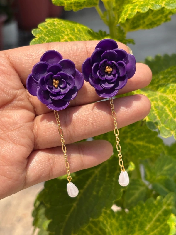 A statement piece crafted with layers of deep violet petals, these earrings capture the beauty of a blooming flower under moonlight ✨
