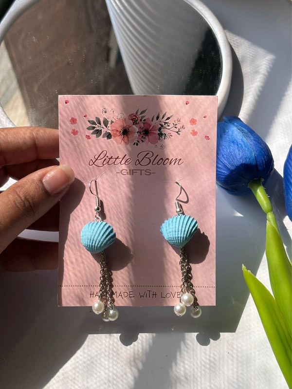 These shell earrings with delicate pearl chains give a graceful, premium look — perfect for elevating any outfit.