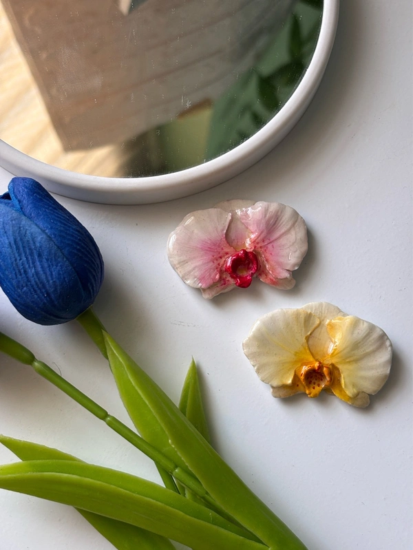 Elevate your hairstyle with the enchanting beauty of the Orchid Hair Clip Combo, lovingly handcrafted by Little Bloom Gifts🌸. This stunning pack of two hair clips is designed to add a touch of sophistication and floral charm to your everyday look or special occasions. Perfect for nature-inspired lovers, these clips are both functional and stylish, making them an irresistible accessory for anyone who appreciates the finer details.