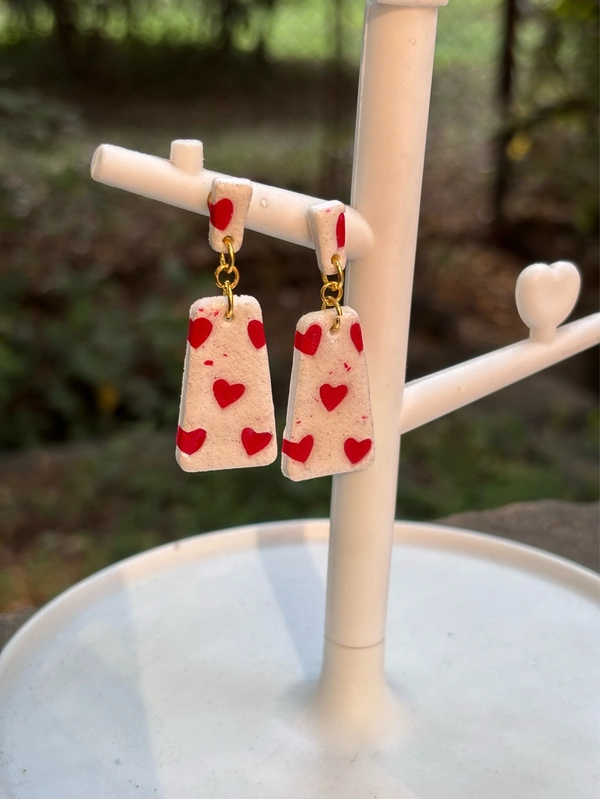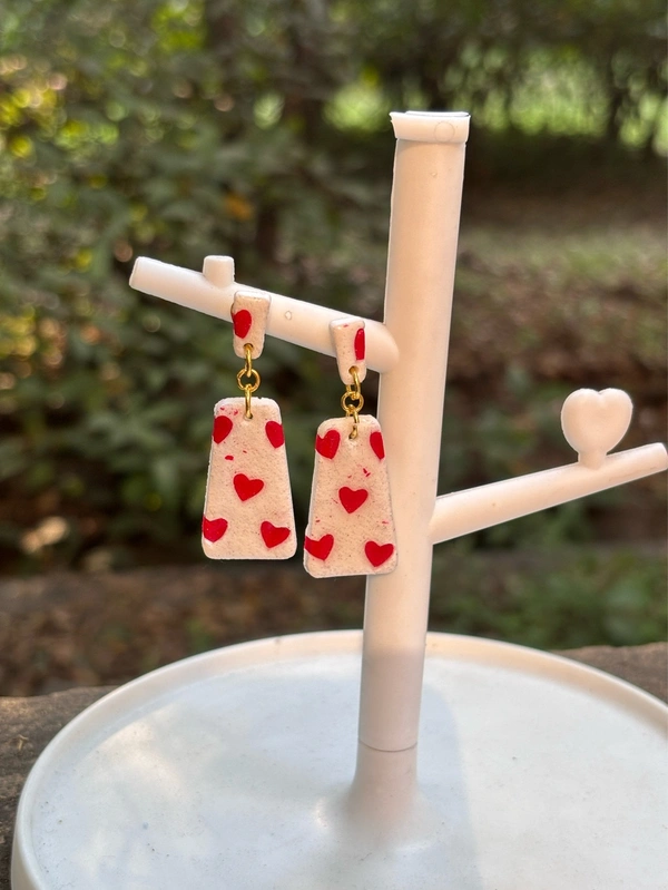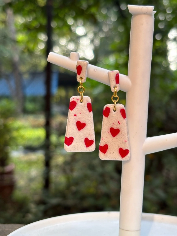 Red Heart Clay Dangle Earrings